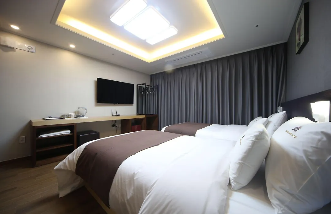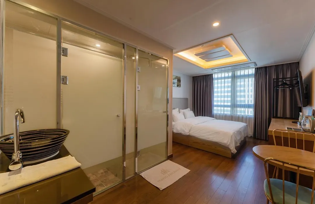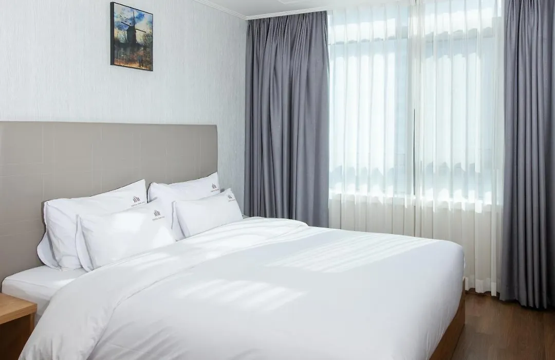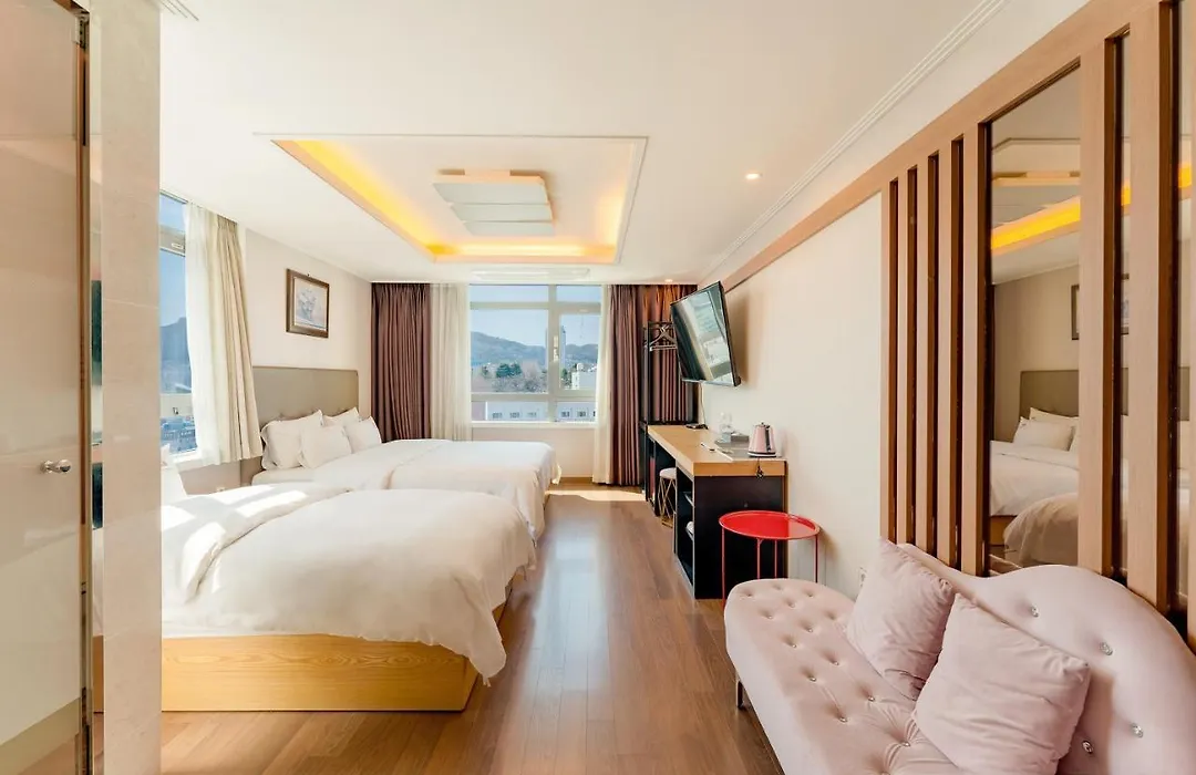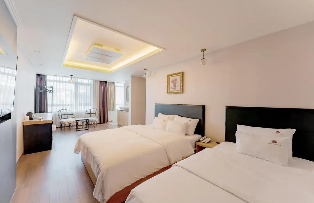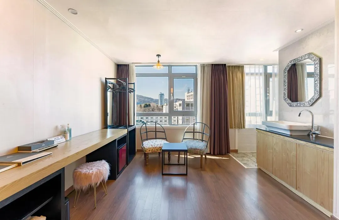This Busan hotel has 67 rooms with a dining area. Free wireless internet and a flat-screen TV with satellite channels along with a mini fridge bar are provided. Bathroom comforts include a hairdryer and bathrobes, and such essentials as a bidet, a separate toilet, and a shower. Guests can also enjoy views of the sea.